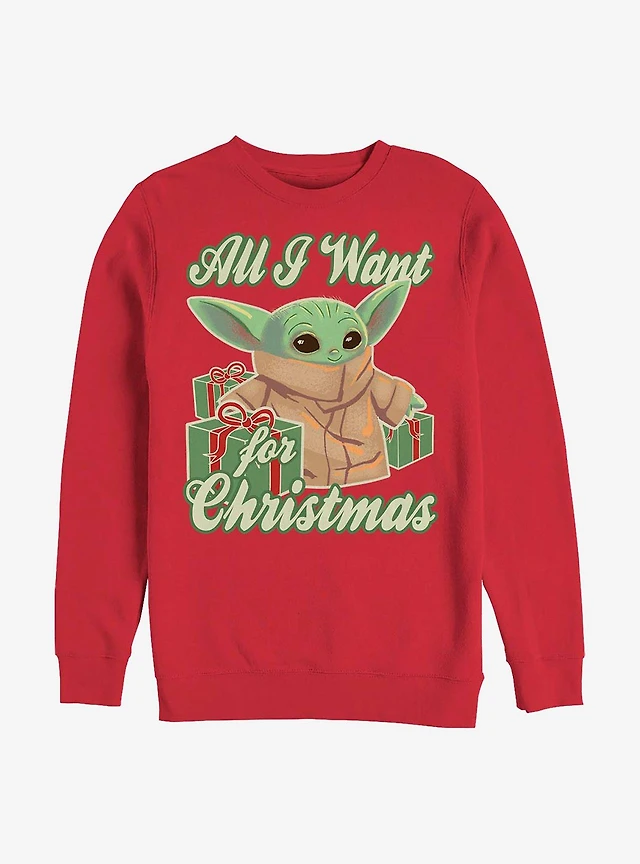 Star Wars The Mandalorian Child All I Want For Christmas Crew Sweatshirt