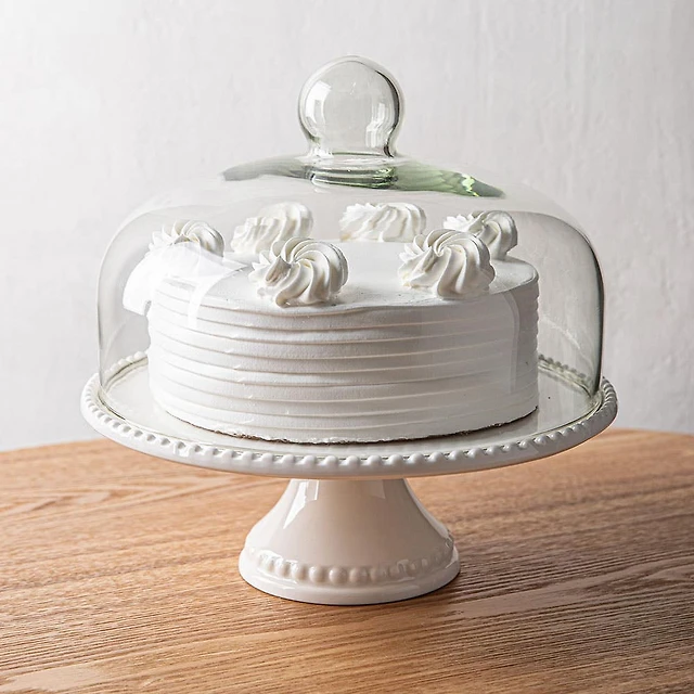 KSP Dessert Cake Plate with Glass Lid (White)