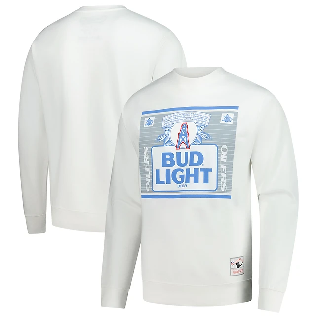 Men's Mitchell & Ness x Bud Light White Houston Oilers The Crest Pullover Sweatshirt