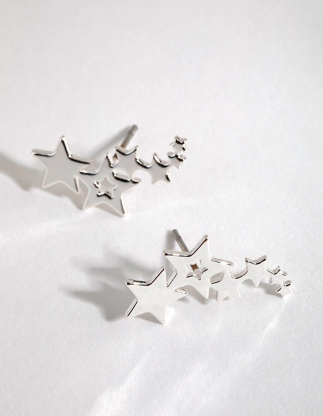 Silver Star Chain Earrings