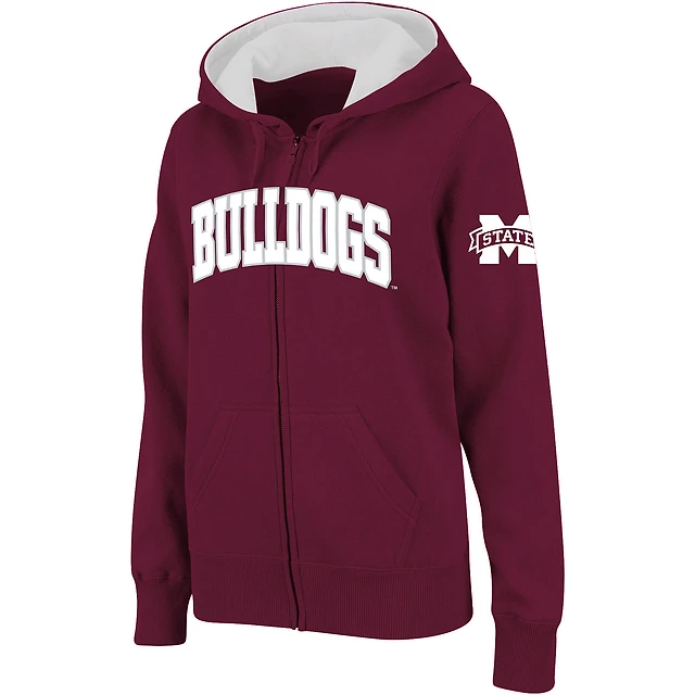 Women's Stadium Athletic Maroon Mississippi State Bulldogs Arched Name Full-Zip Hoodie