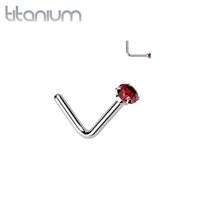 Implant Grade Titanium Red CZ L Shape Nose Stud