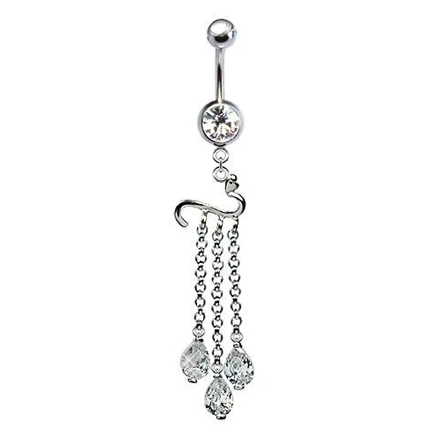 316L Surgical Steel Snake with CZ Chain Dangles Dangle Belly Ring