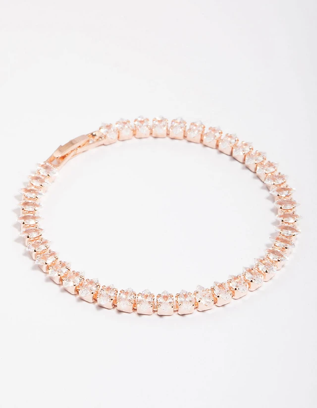 Rose Gold Cubic Zirconia Navette Tennis Bracelet