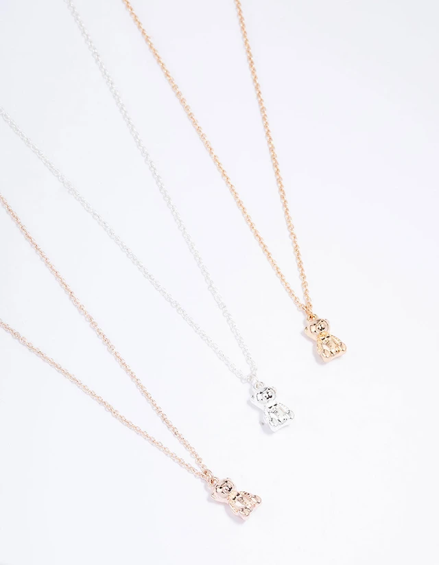 Pastel Holographic Teddy Bear Necklace 3-Pack