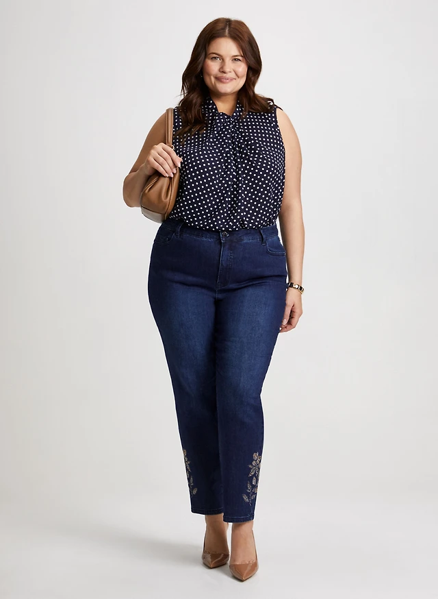 Balloon Sleeve Paisley Top & Embellished Hem Jeans