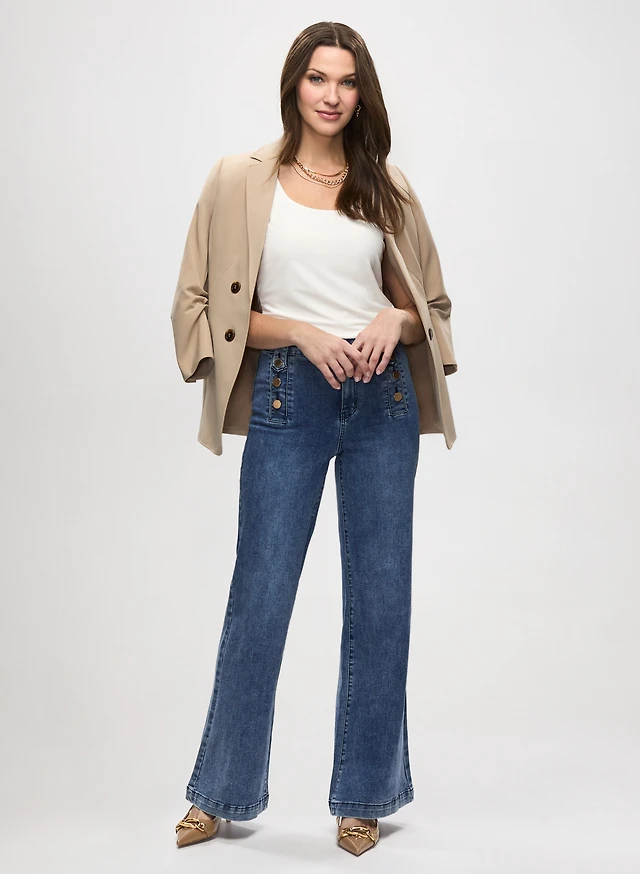 Boyfriend Style Button Cuff Blazer & Slim Pull-On Ankle Pants