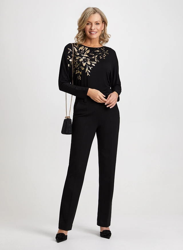 Asymmetric Funnel Neck Top & Slim-Leg Ankle Pants