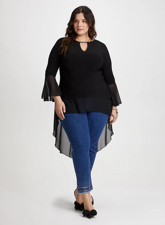 Ruffled Sleeve Chiffon Top & Slim Leg Jeans
