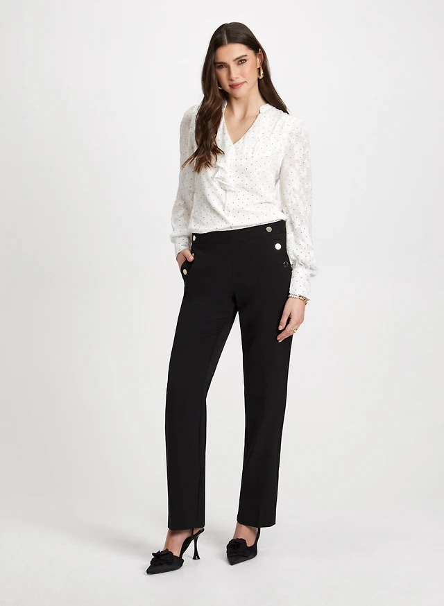 Ruffled Bell Sleeve Top & Pull-On Ankle Pants