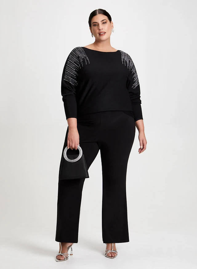 Pearl & Stud Detail Sweater & Striped Slim Pants