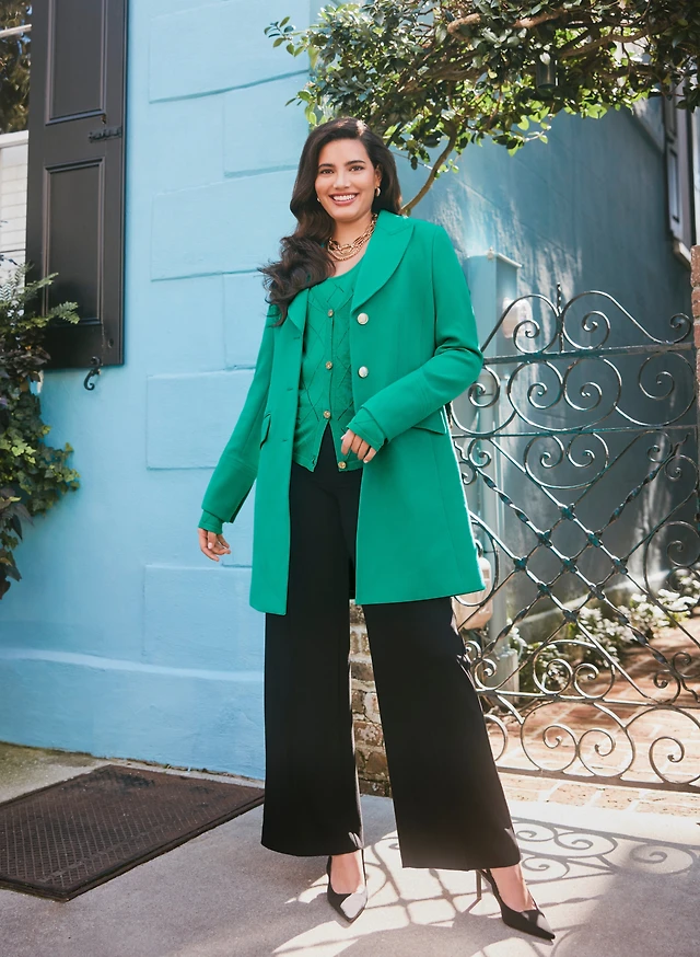 Stripe Bouclé Jacket & Slim-Leg Pants