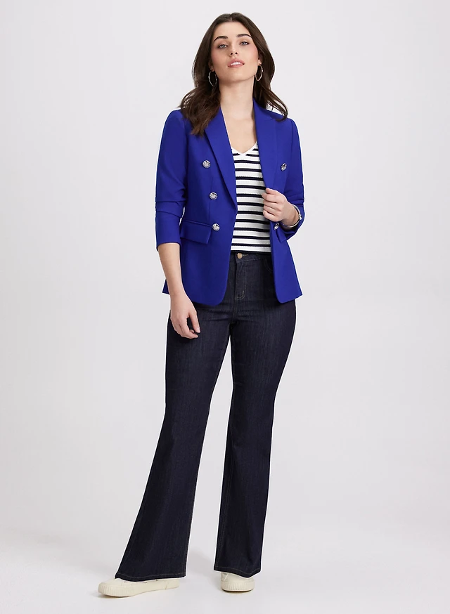 Button Blazer & Flare Leg Jeans