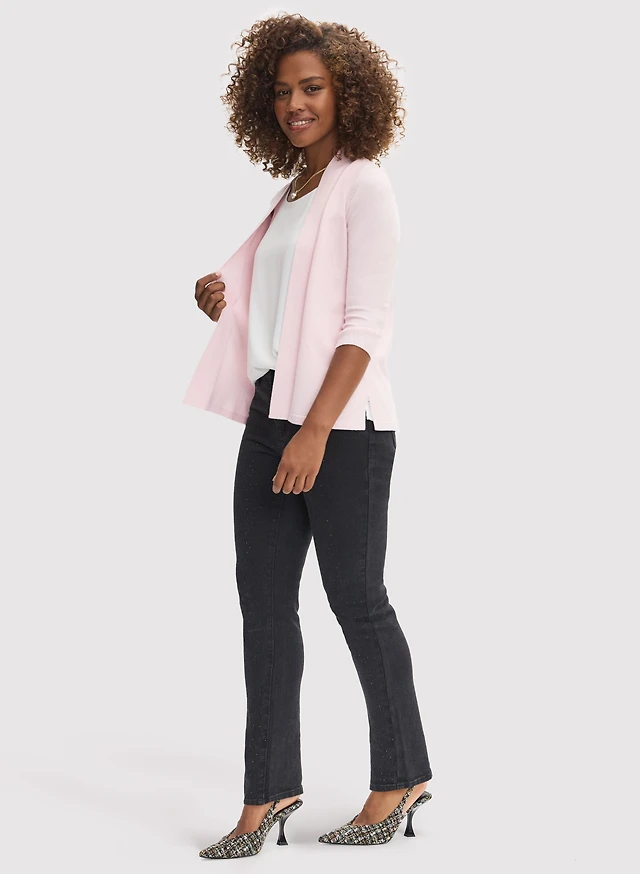 Pointelle Stitch Cardigan & Flare Leg Jeans
