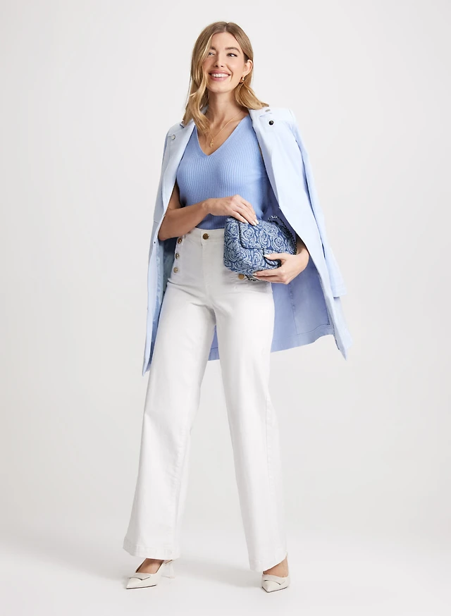 Open Front Cardigan & Button Detail Wide Leg Jeans