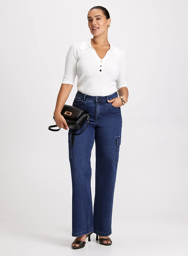 Elbow Sleeve Sweater & Wide Leg Cargo Jeans