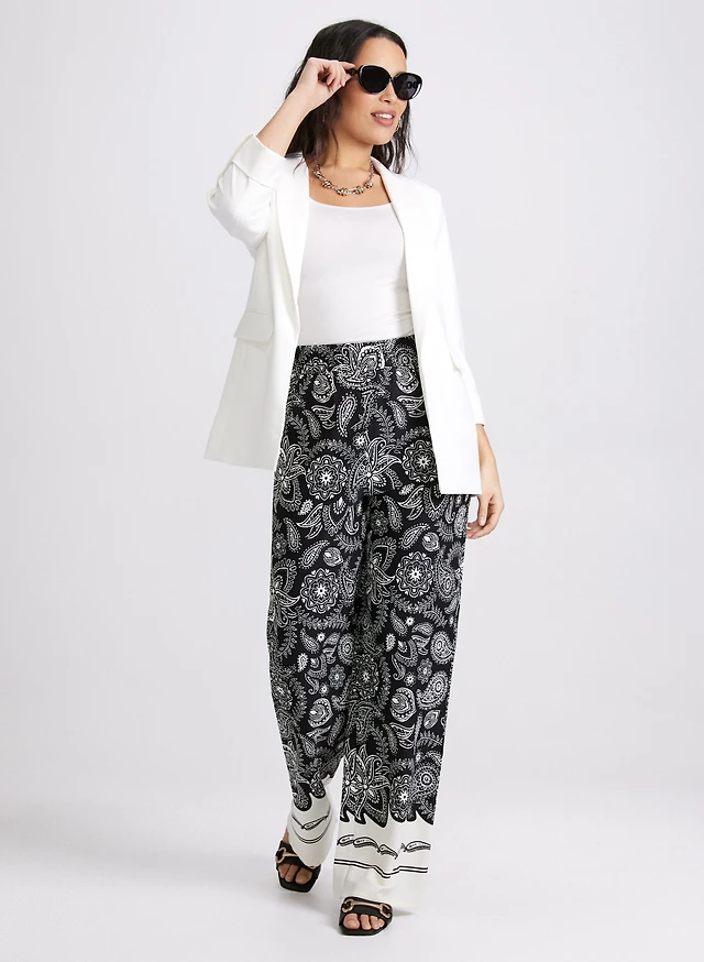Single-Button Jacket & Pull-On Wide-Leg Pants