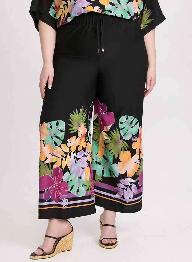 Joseph Ribkoff - Palm Leaf Print Wide Leg Pants