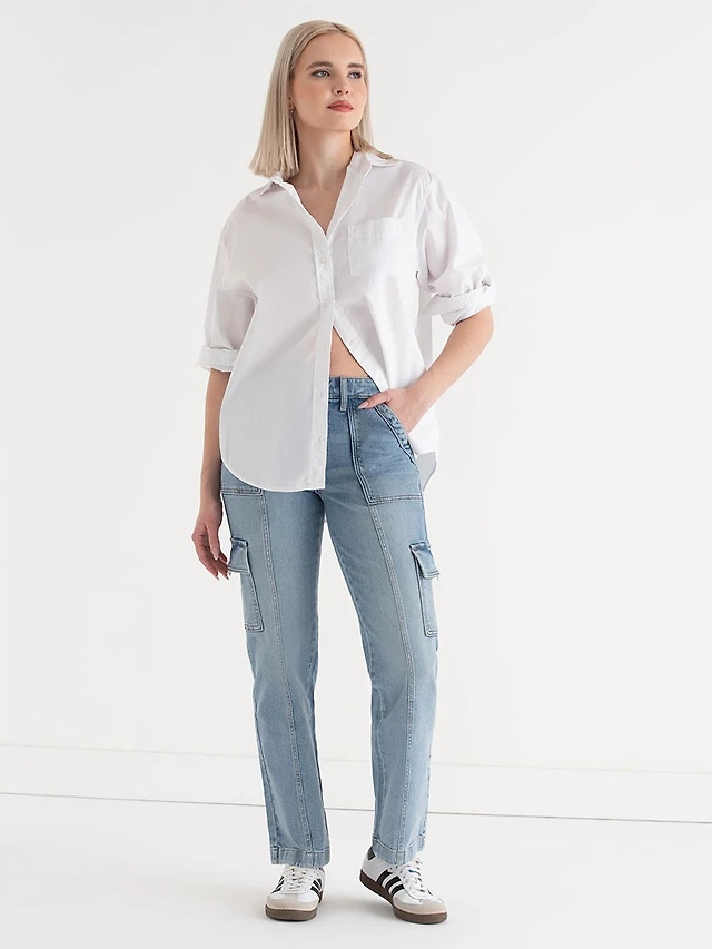Indigo Wide Leg Cargo Denim Pants Plus Size