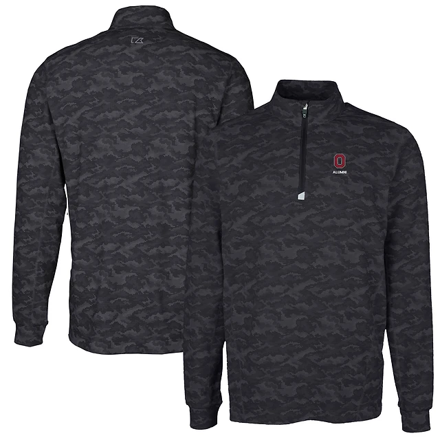 Women's Cutter & Buck Charcoal New Orleans Saints Helmet Logo Traverse Camo Print Stretch Quarter-Zip Pullover Top