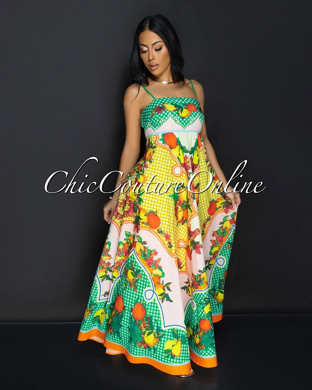 Liora Yellow Multi Tropical Maxi Dress
