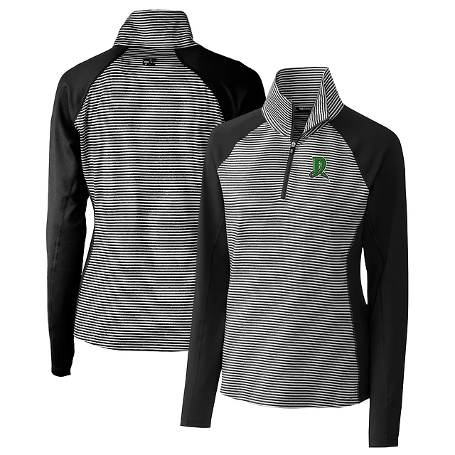 Women's Cutter & Buck Black Dayton Dragons Forge DryTec Tonal Stripe Stretch Half-Zip Top