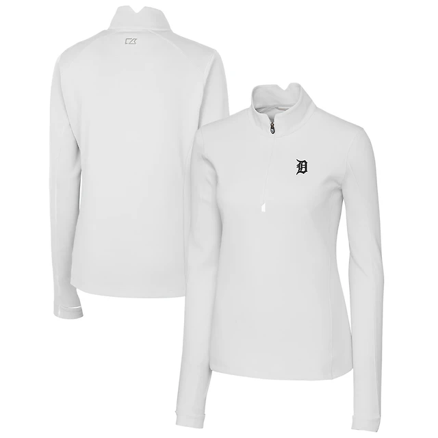 Women's Cutter & Buck White Detroit Tigers Traverse Stretch Quarter-Zip Pullover Top
