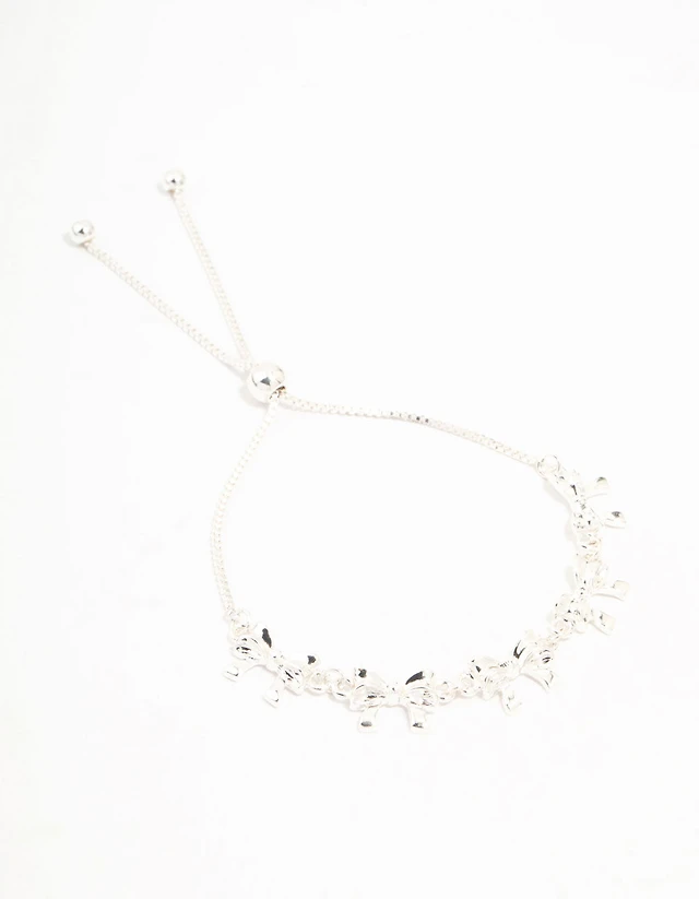 Silver Plated Bow Strip Charm Toggle Bracelet