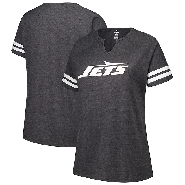 Women's Fanatics Charcoal Cleveland Browns Plus Logo Striped Raglan Notch Neck T-Shirt