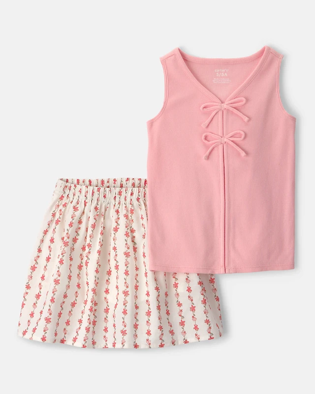 Girls 2-Piece Floral Sleeveless Top & Skort Set - Pink