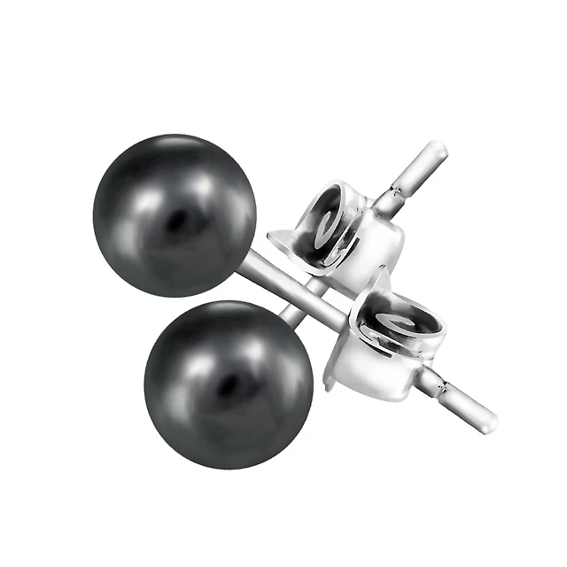 6mm Black Pearl Stud Earrings in Sterling Silver