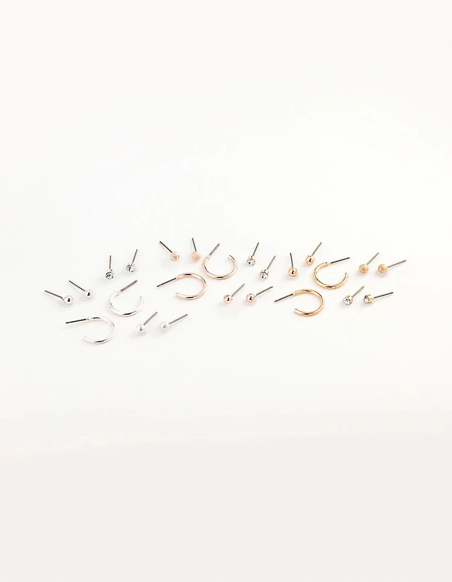 Sterling Silver Ball Diamante Stud & Hoop Earring Pack