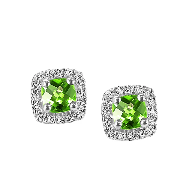 Stud Earrings with .16 Carat TW of Diamonds and Peridot in 10kt White Gold