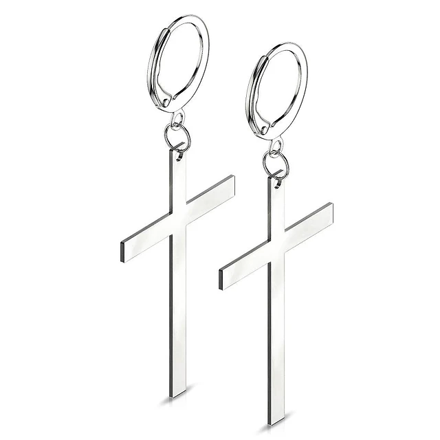 Pair 316L Surgical Steel Large Dangling Cross Earring Hoops