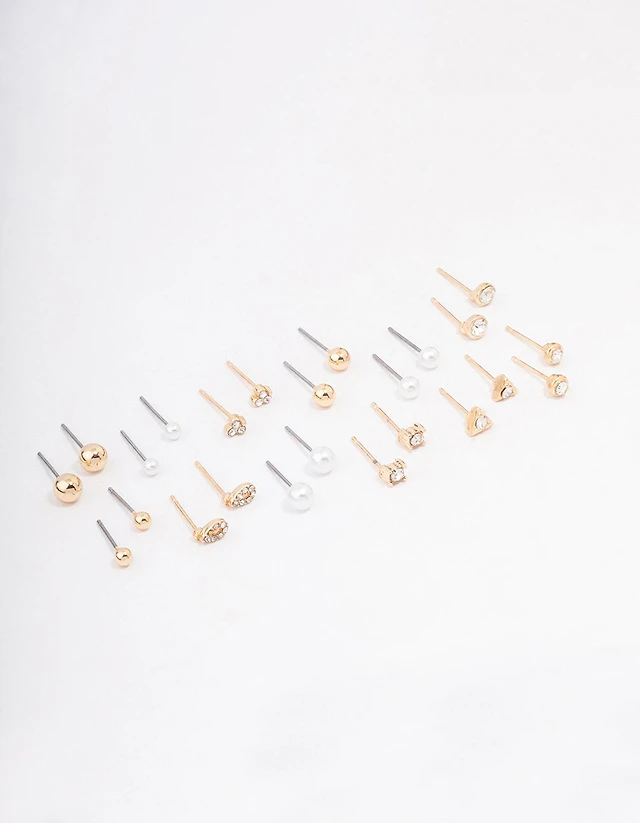 Gold Mixed Shaped Diamante Stud Earrings 8-Pack