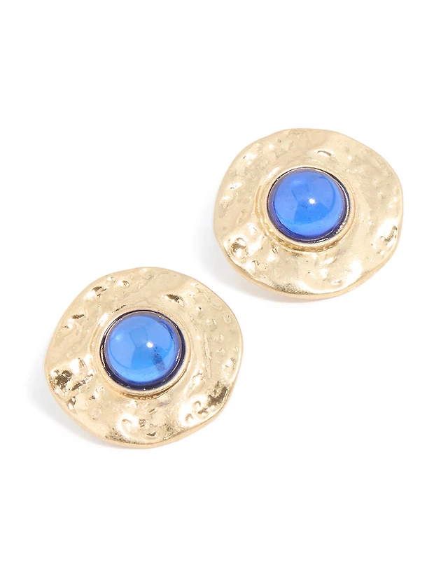 Gold Dark Blue Resin Drop Stud Earrings