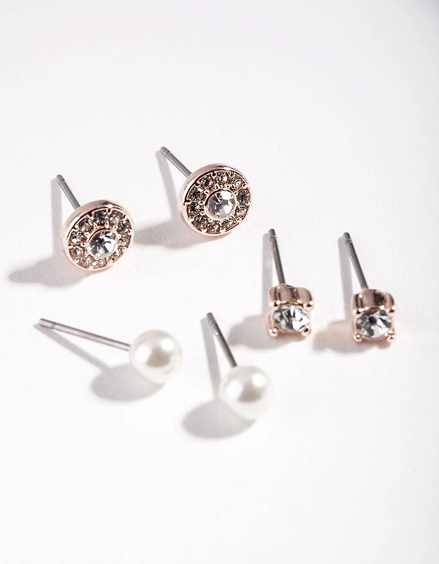 Rose Gold Plain Diamante Stud Earring Pack