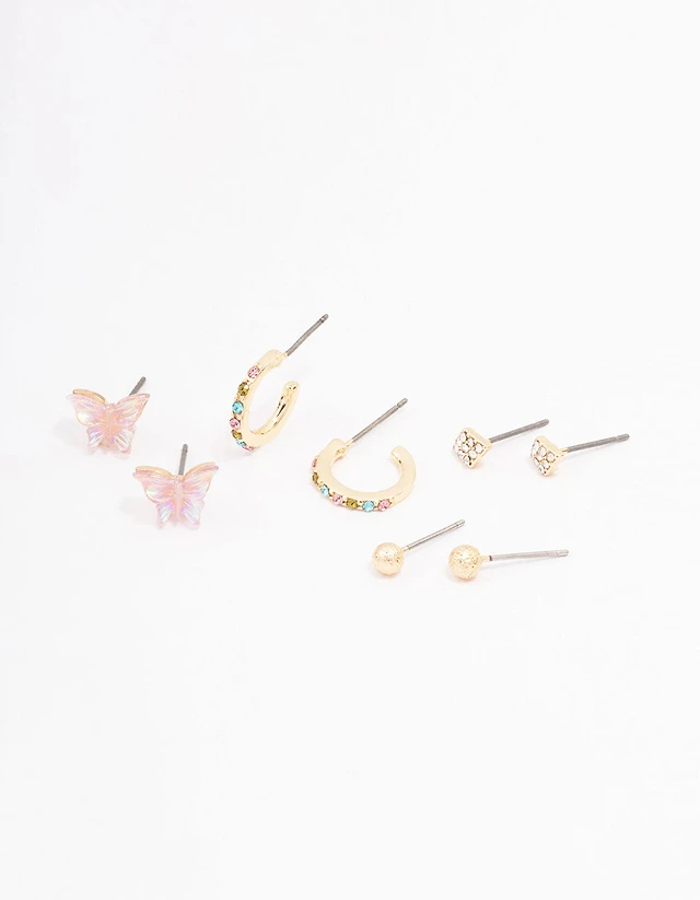 Gold Mixed Basic Stud Earrings 8-Pack