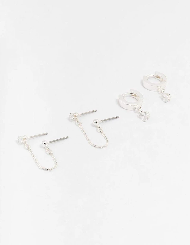 and White Lab-Created Sapphire Heart Stud and Hoop Three Pair Earrings Set in Sterling Silver