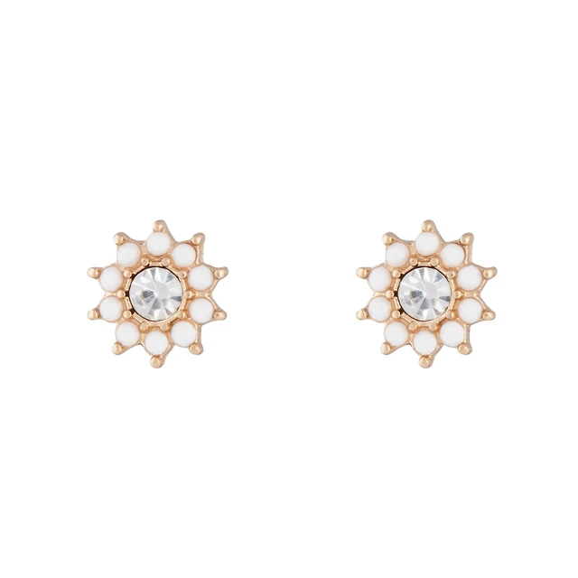 Child's Pink and White Cubic Zirconia Flower Stud Earrings in 14K Gold