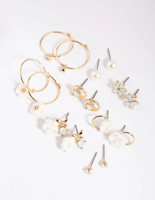Gold Pearl Stud & Hoop Earring 8-Pack