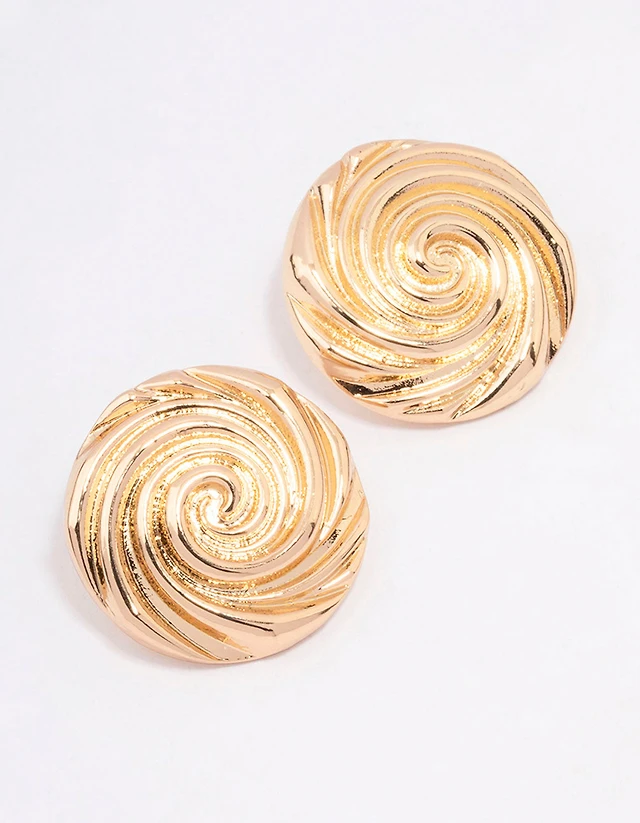 Textured Button Swirl Stud Earrings in 10K Gold