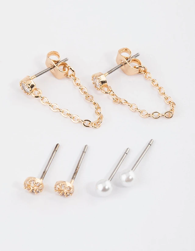 Gold Round & Pearl Stud Earrings Pack