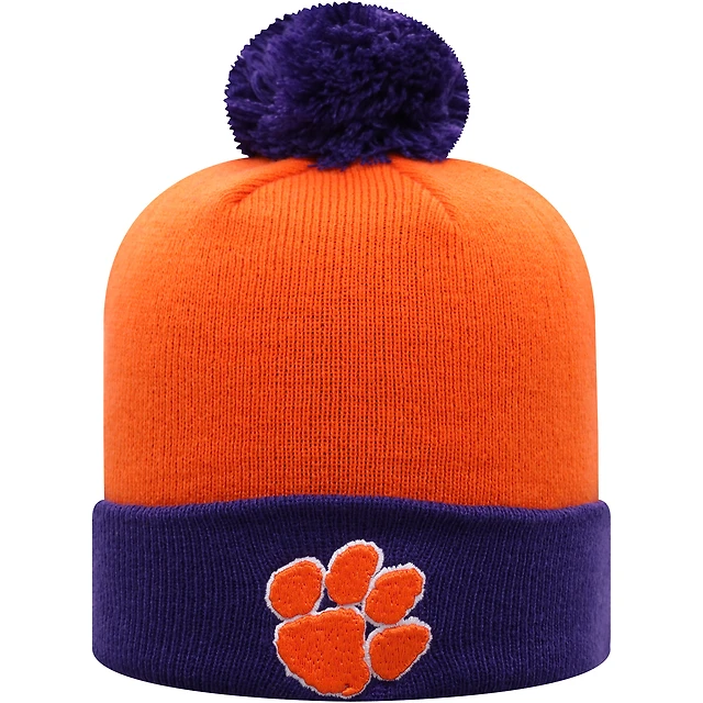 Men's Top of the World Orange/Purple Clemson Tigers Core 2-Tone Cuffed Knit Hat with Pom