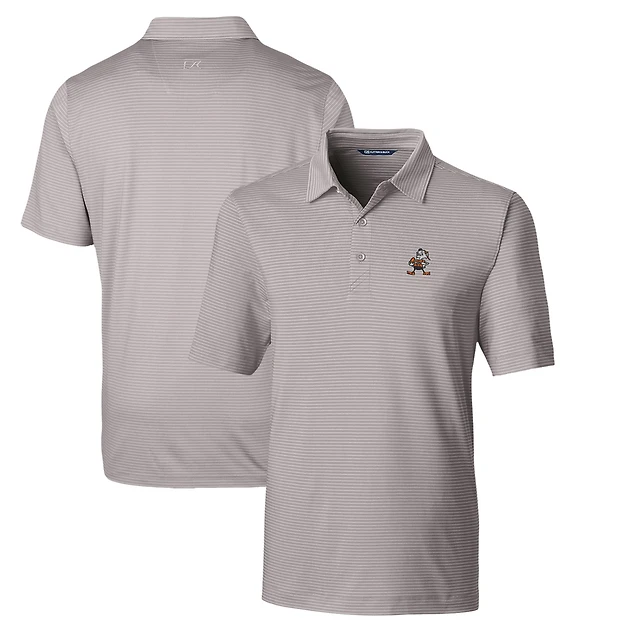 Men's Cutter & Buck Gray Cleveland Browns Throwback Logo Big Tall Forge Pencil Stripe Stretch Polo