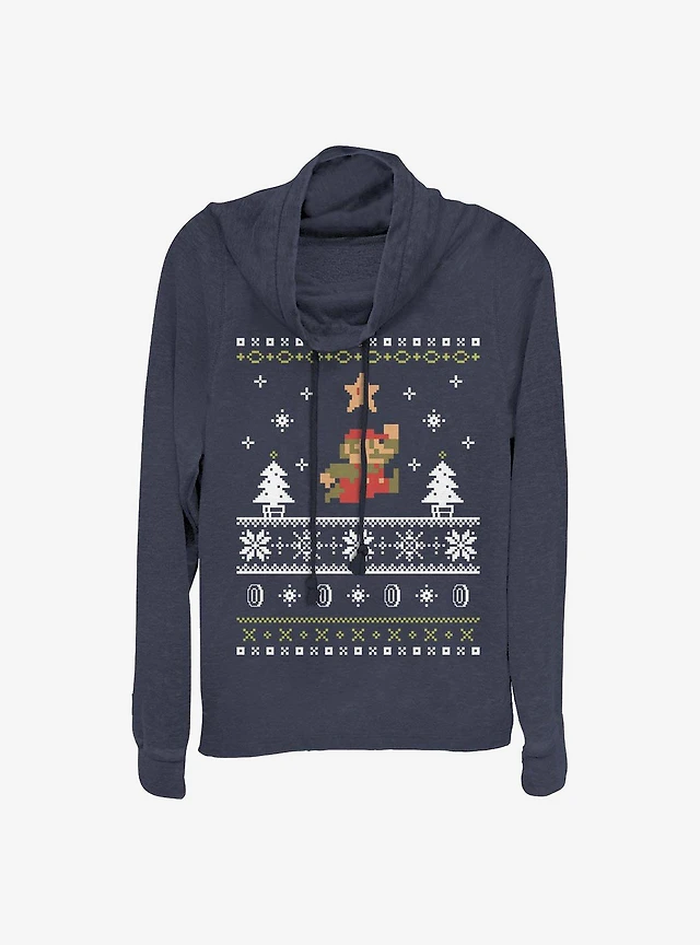 Super Mario Nordic Christmas Print Cowl Neck Long-Sleeve Girls Top