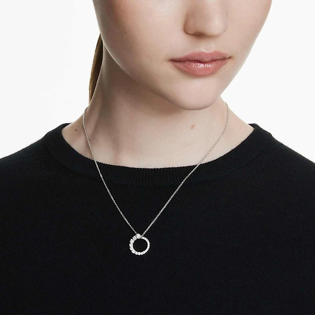 Hyperbola pendant, Mixed cuts, Twist, White, Rhodium plated by SWAROVSKI