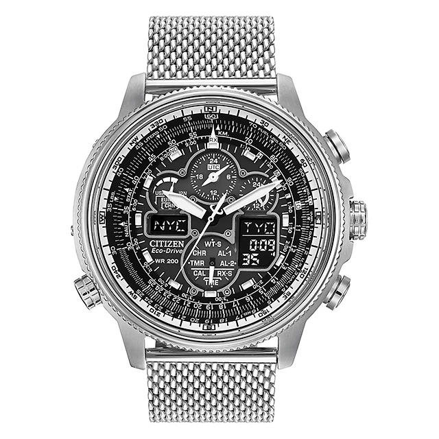 Mens Citizen Eco Drive Promaster Nighthawk A-T Silver Tone Watch