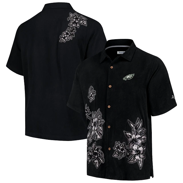 Men's Tommy Bahama Black Clemson Tigers Veracruz Cay First Down Blooms Button-Up Shirt