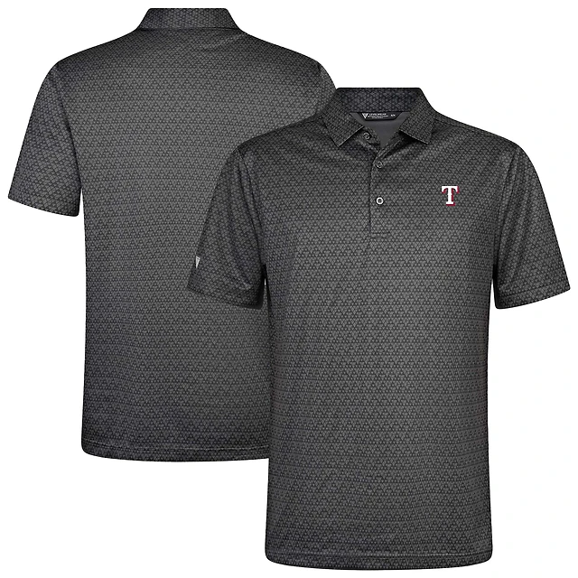 Women's Cutter & Buck Black Texas Rangers Eco Textured Stretch Recycled Polo